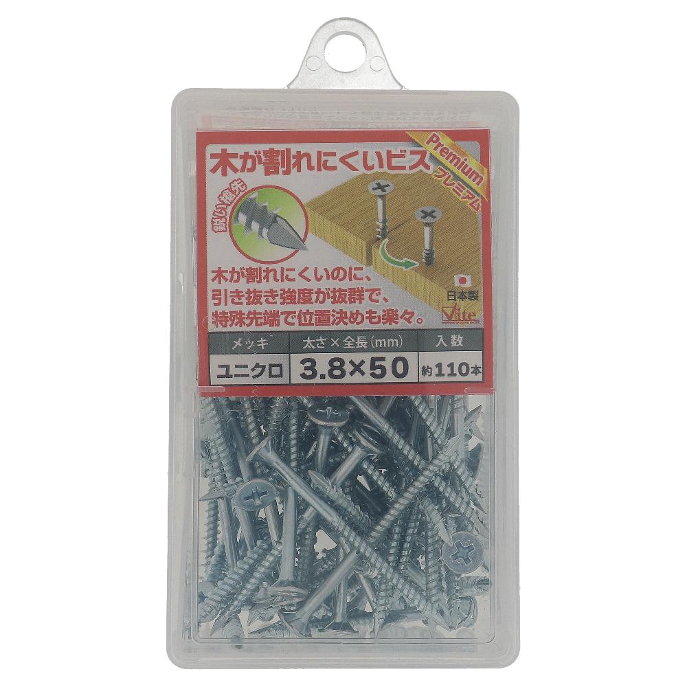 先端に特殊刃先がついていて、木が割れにくいのに引き抜き強度抜群!位置決め打ちこみも楽々。ネジ部は、高低山の2条ネジで電動工具のバッテリーもちも良好!