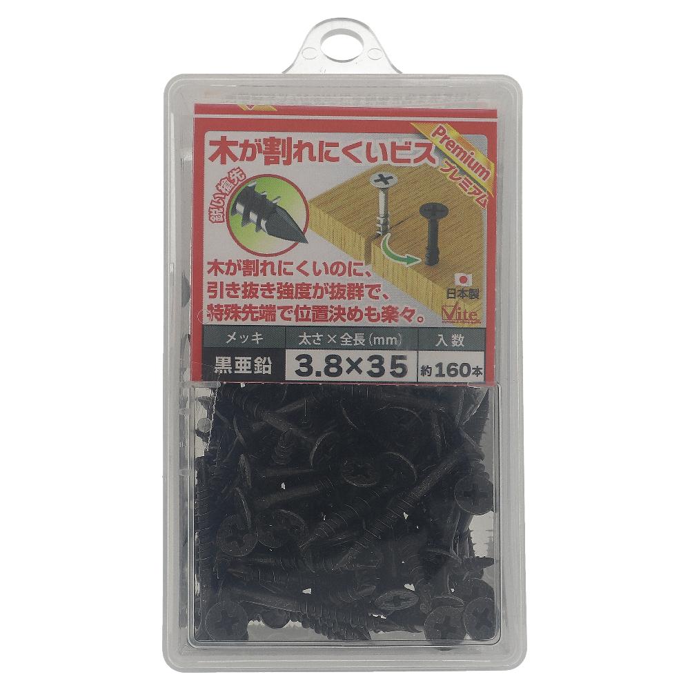 鉄/黒亜鉛メッキ 木が割れにくいビス プレミアム フレキ付 3.8X35 (160本入)