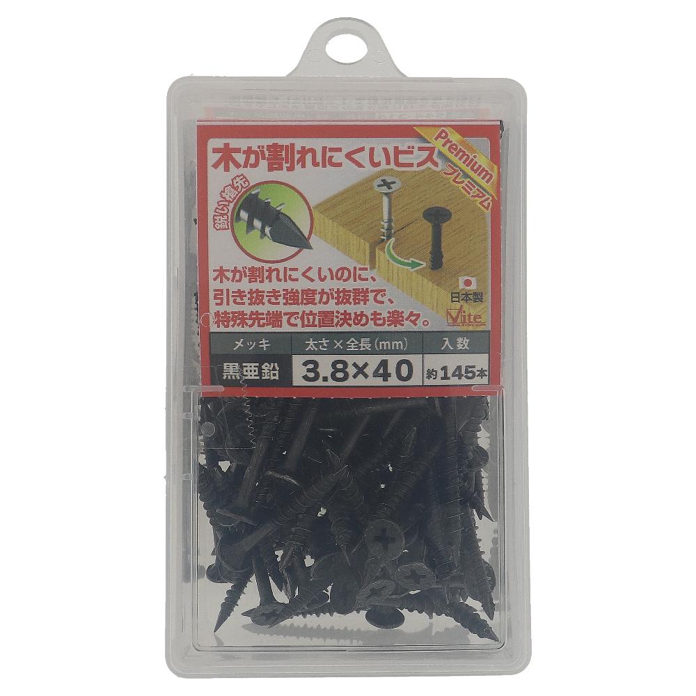鉄/黒亜鉛メッキ 木が割れにくいビス プレミアム フレキ付 3.8X40 (145本入)