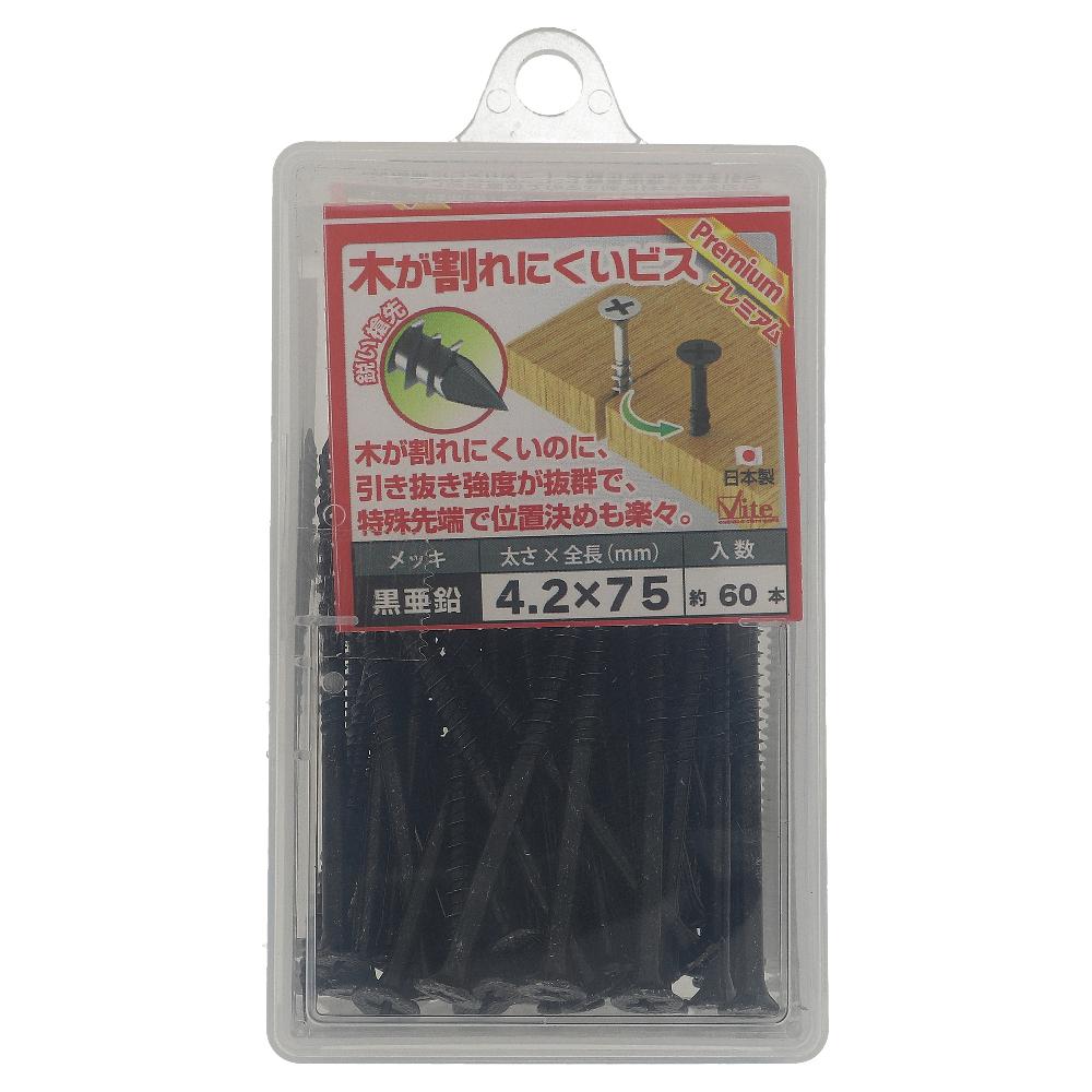 鉄/黒亜鉛メッキ 木が割れにくいビス プレミアム フレキ付 4.2X75 (60本入)