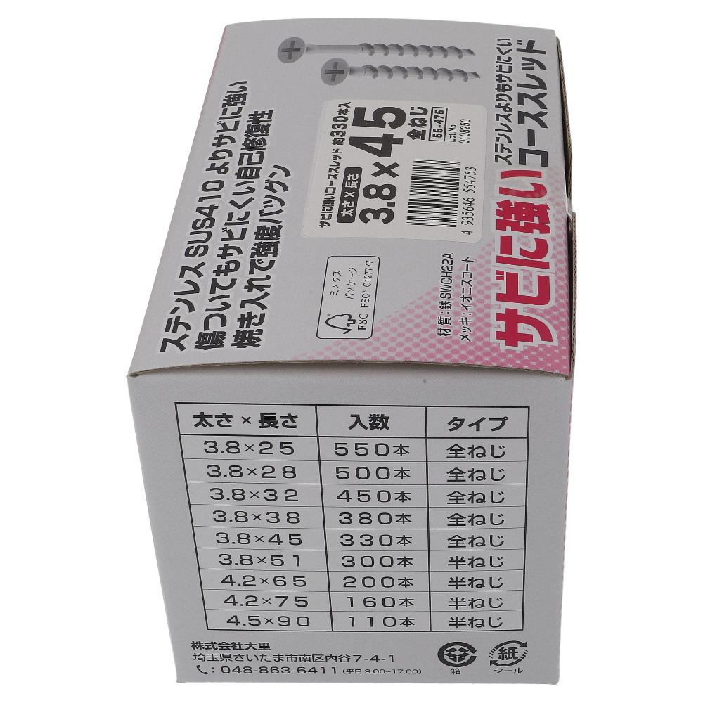 鉄/イオニスコート サビに強いコーススレッド 全ねじ 3.8X45 (330本入)