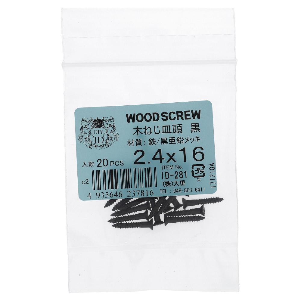 鉄/黒亜鉛メッキ 木ねじ 皿ブラック 2.4X16 (20本入)