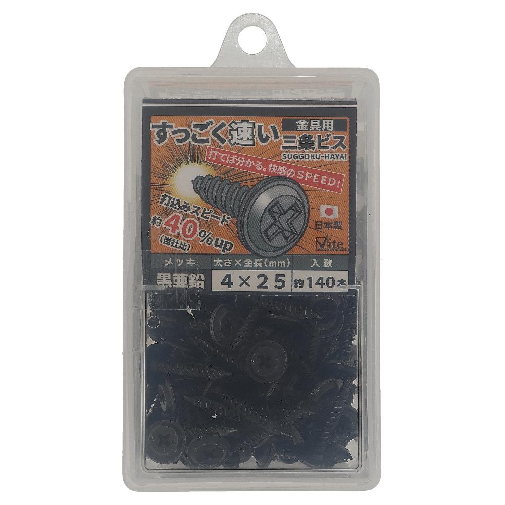 鉄/亜鉛黒 すっごく速い三条金具ビス 4X25 (140本入)