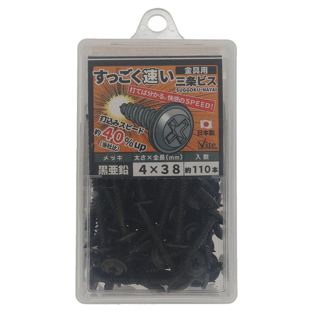 鉄/亜鉛黒 すっごく速い三条金具ビス 4X38 (110本入)
