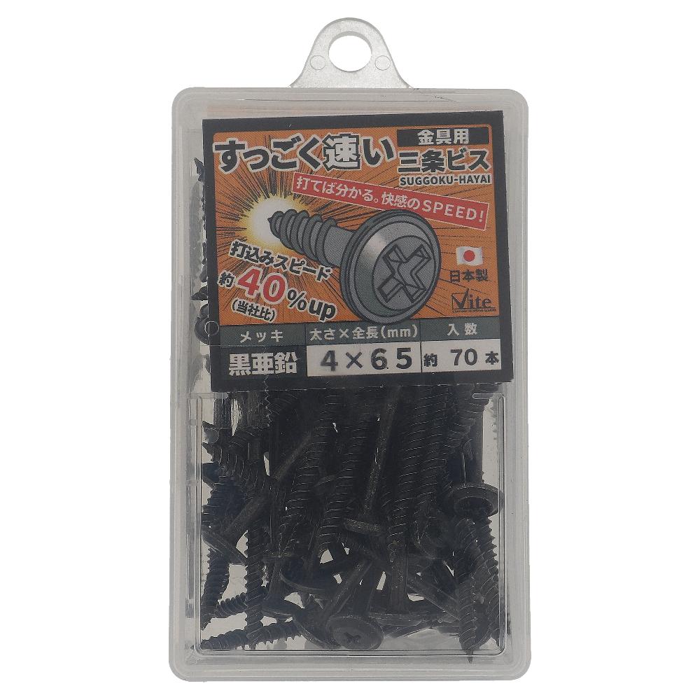 鉄/亜鉛黒 すっごく速い三条金具ビス 4X65 (70本入)