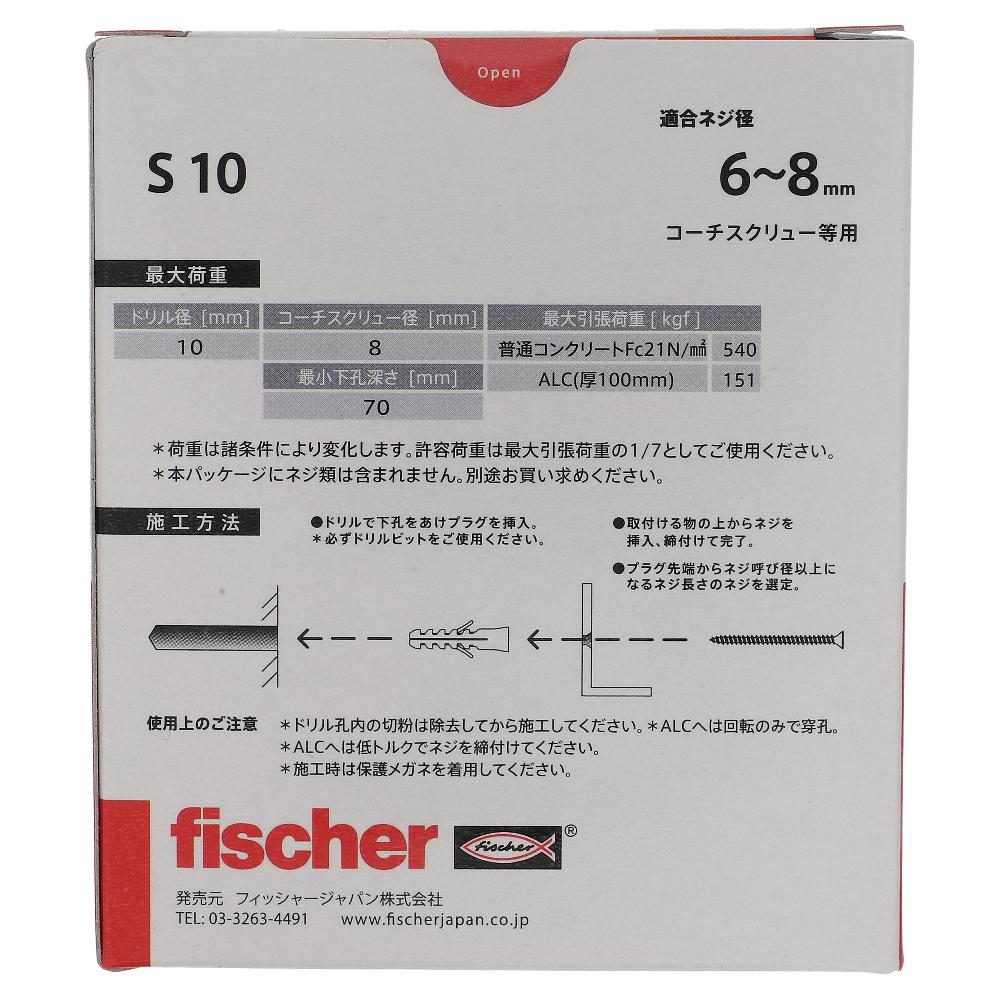 形状:2方向拡張プラグ S  用途:コンクリート・石材・軽量気泡コンクリート(ALC)用  下穴径:10mm  対応ねじ:コーチスクリュー等(6.0~8.0mm)  材質:ナイロン6