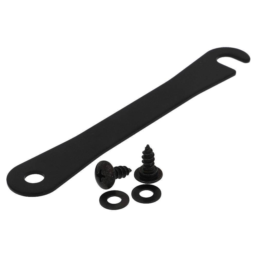色:ブラック  セット内容:開き閉じ止めプレート(1枚)/段付きビス(2本)/座金(2個)  材質:鉄  処理:カチオン黒