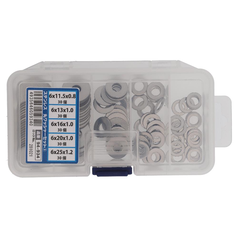 外径・厚みが異なる5種類の呼び径M6の丸座金がセットになっています。