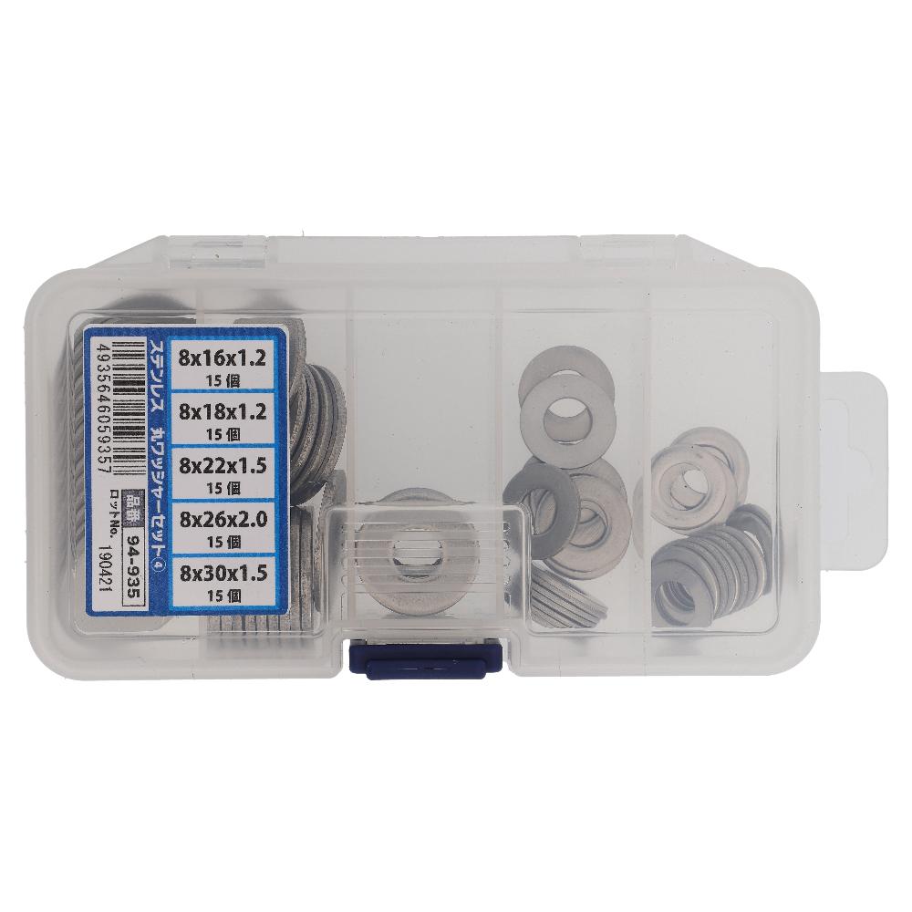 外径・厚みが異なる5種類の呼び径M8の丸座金がセットになっています。