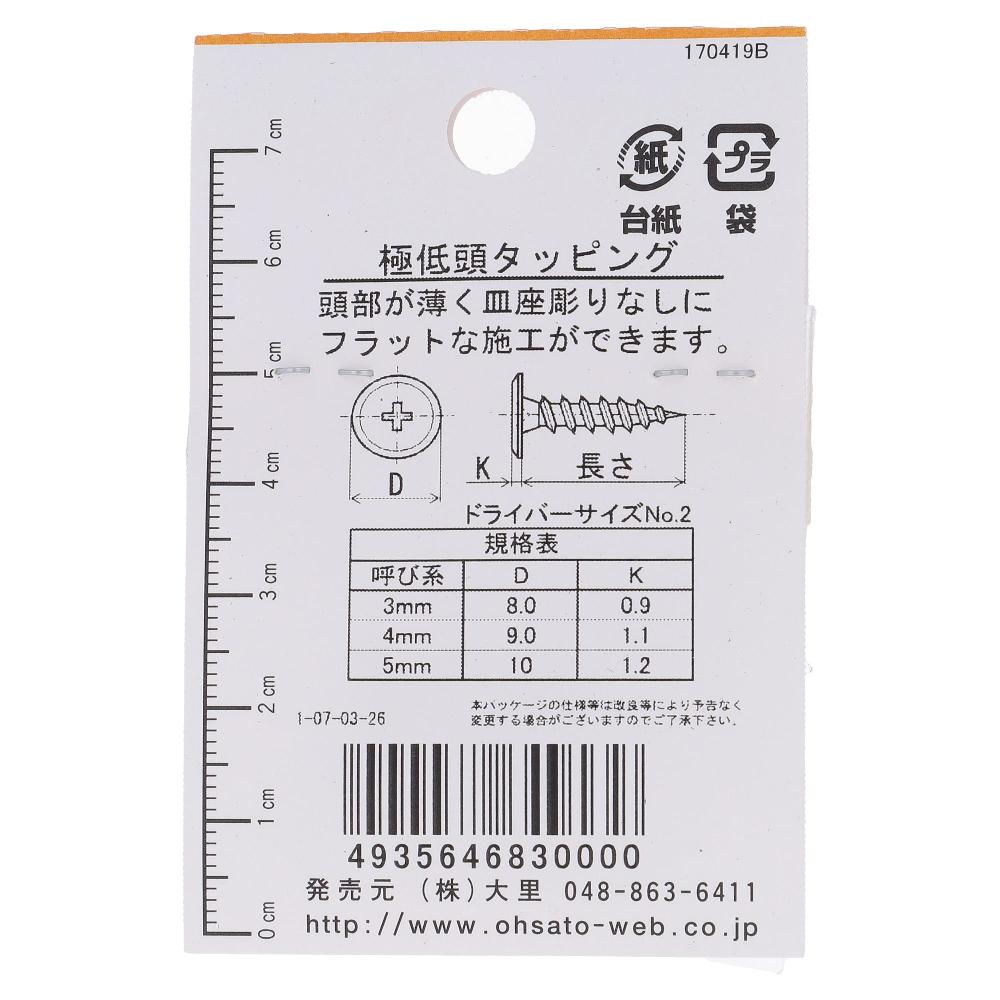 鉄/ニッケルメッキ 極低頭 タッピング 4X16  50本入 (10本X5パック)