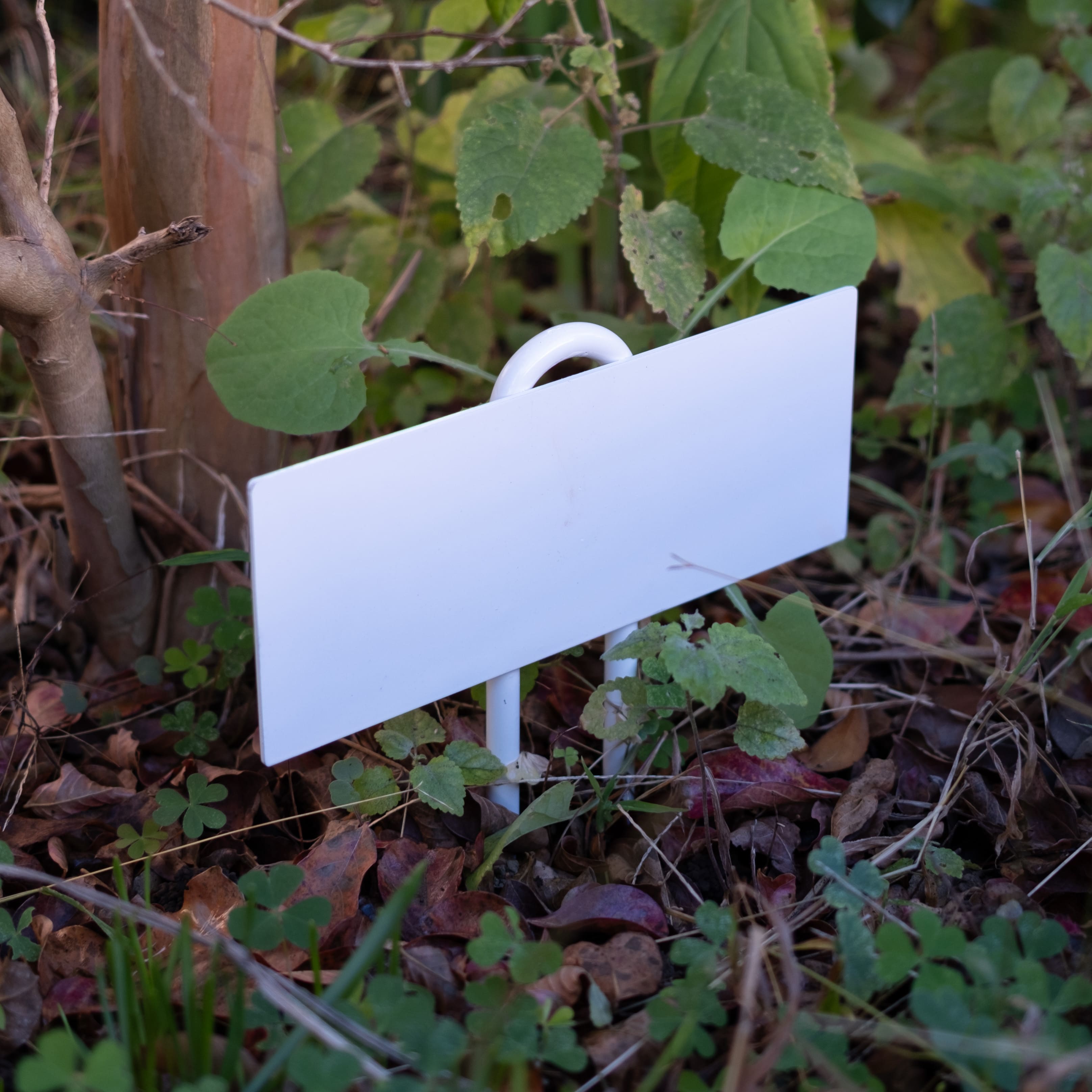2本脚で回転しにくい打ち込みネームプレートです。駐車場のネームプレートや樹名板、看板などに。