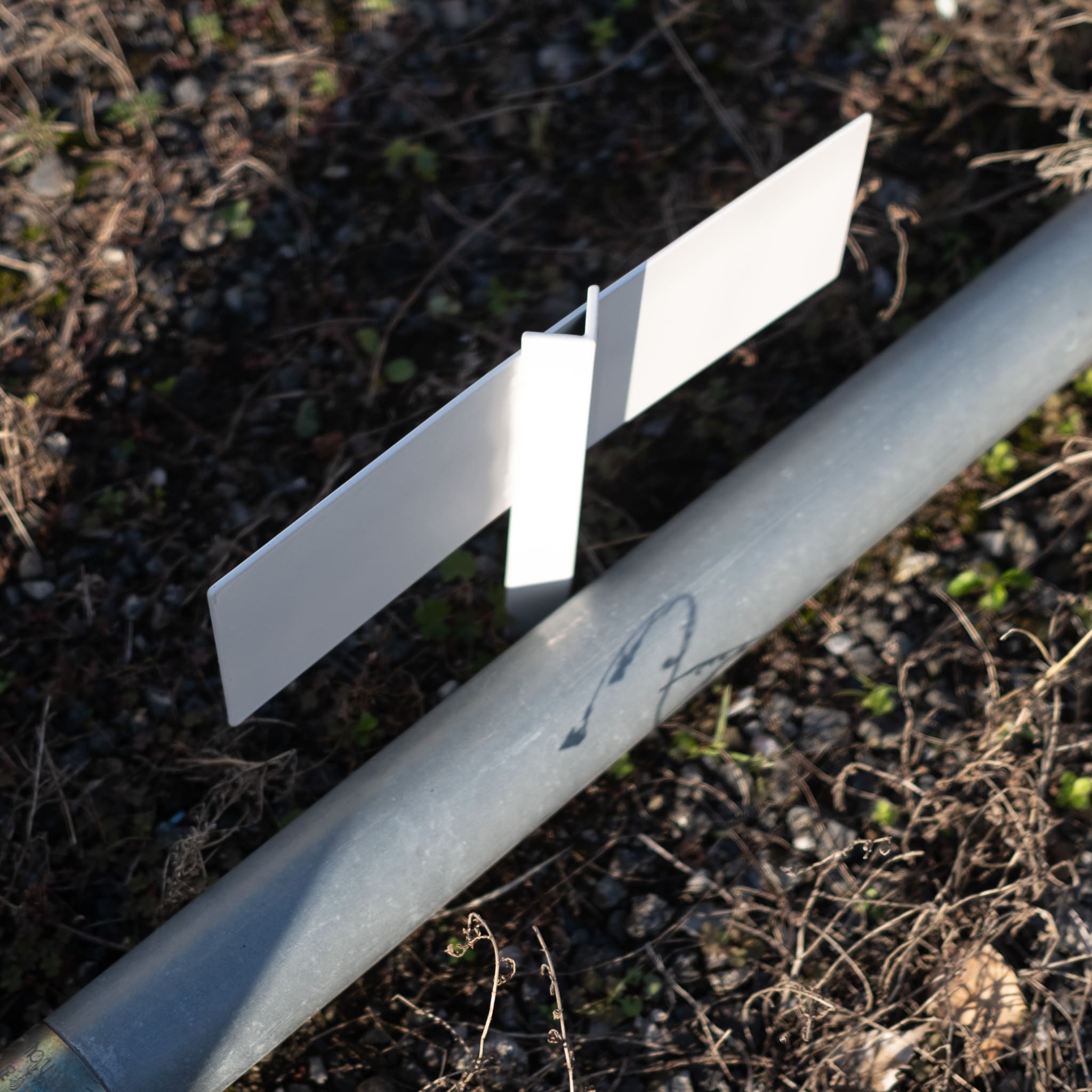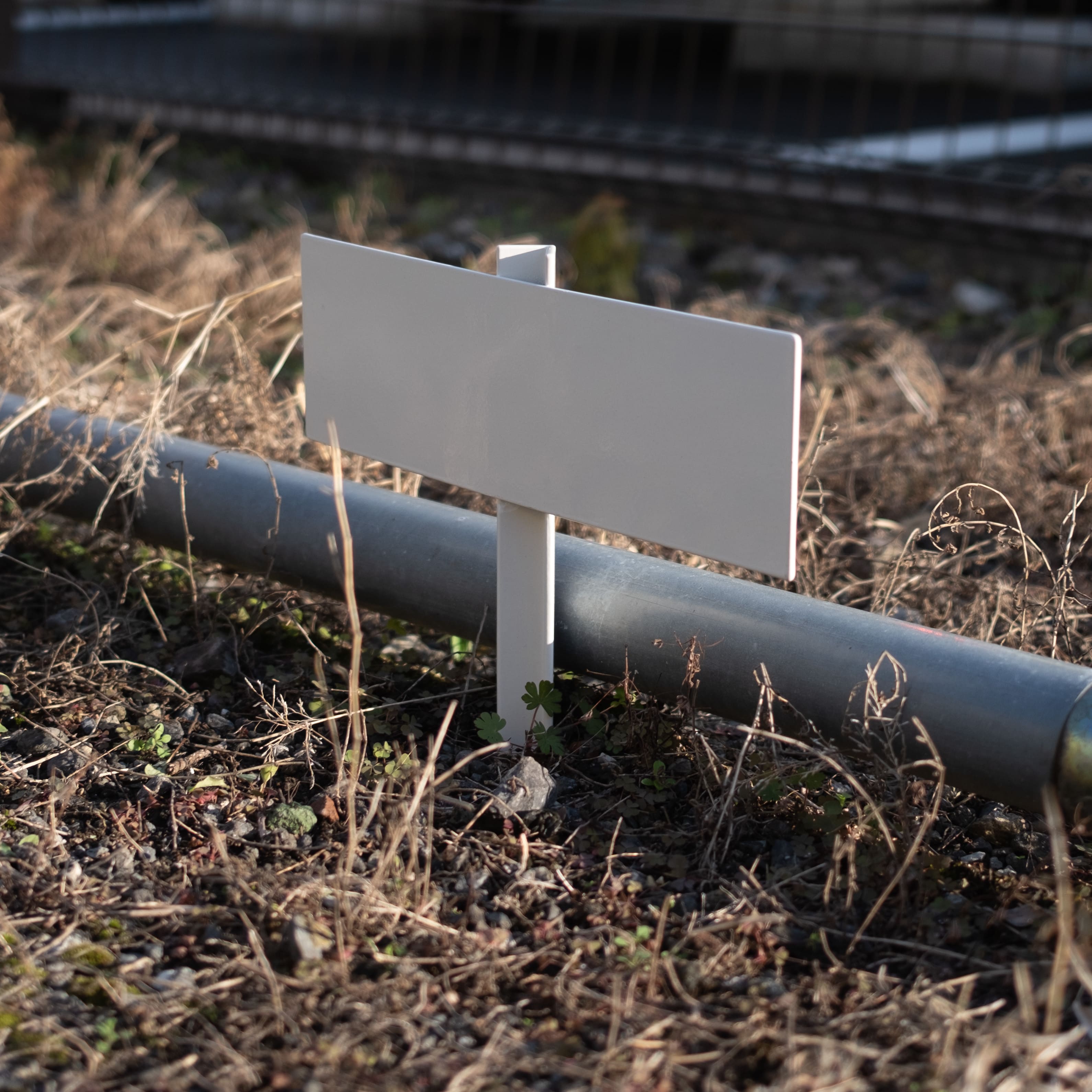 脚がV形状で回転しにくい打ち込みネームプレートです。駐車場のネームプレートや樹名板、看板などに。