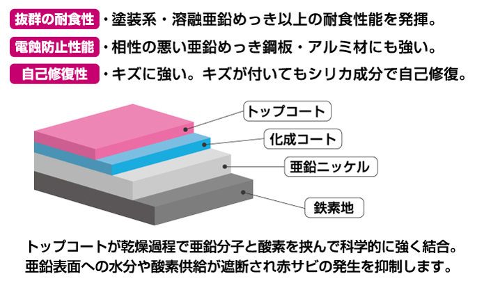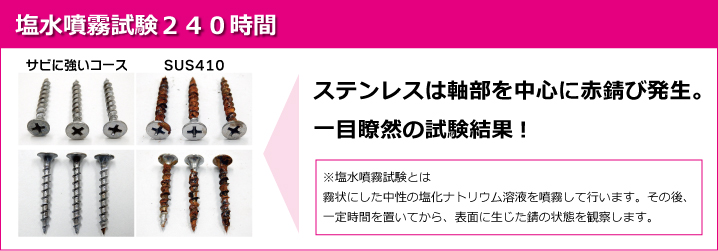 ピックアップサビに強いコーススレッド トップコートが乾燥過程で亜鉛分子と酸素を挟んで科学的に強く結合。亜鉛表面への水分や酸素供給が遮断され赤サビの発生を抑制します。 サビに強いコーススレッドのジャストパックはこちらから⇒ このページの先頭へ