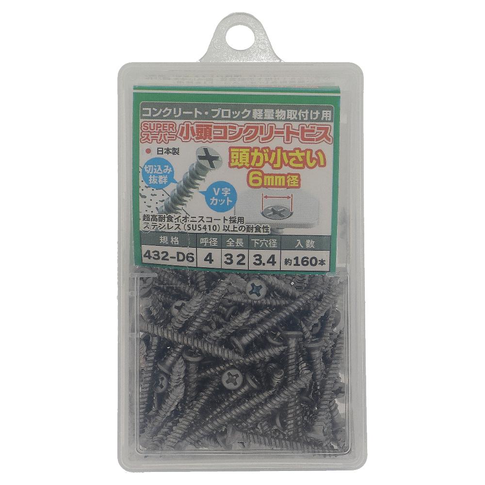 鉄/イオニスコート  スーパー小頭コンクリートビス D6 4X32 (160本入)