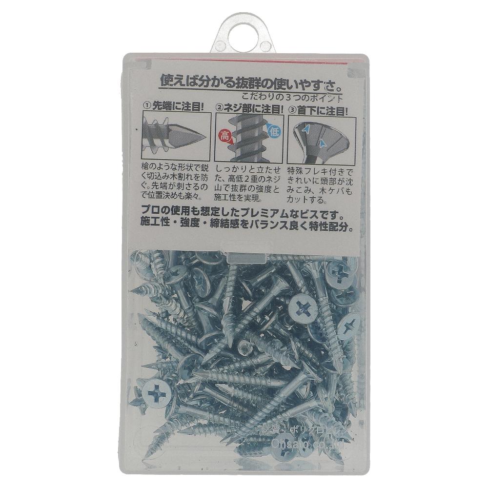 先端に特殊刃先がついていて、木が割れにくいのに引き抜き強度抜群!位置決め打ちこみも楽々。ネジ部は、高低山の2条ネジで電動工具のバッテリーもちも良好!