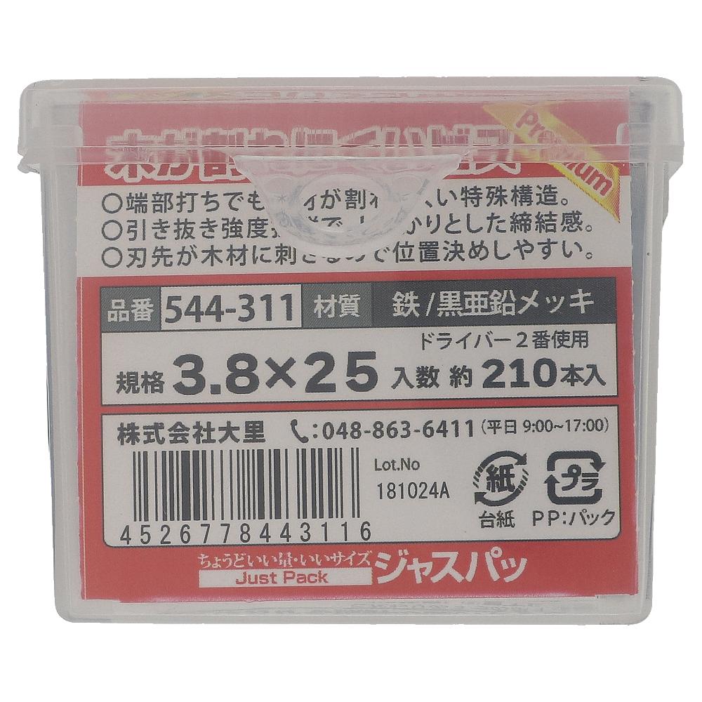 鉄/黒亜鉛メッキ 木が割れにくいビス プレミアム フレキ付 3.8X25 (210本入)