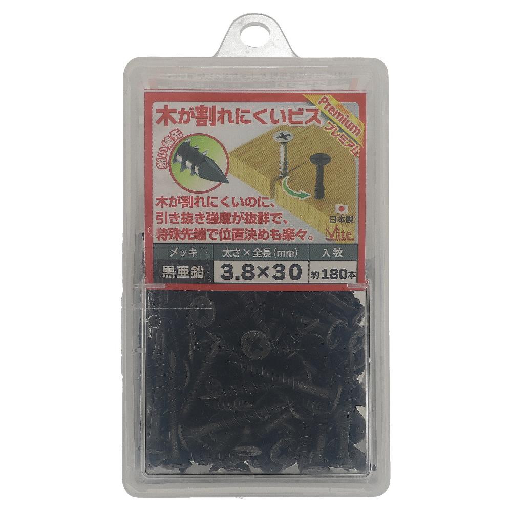 鉄/黒亜鉛メッキ 木が割れにくいビス プレミアム フレキ付 3.8X30 (180本入)