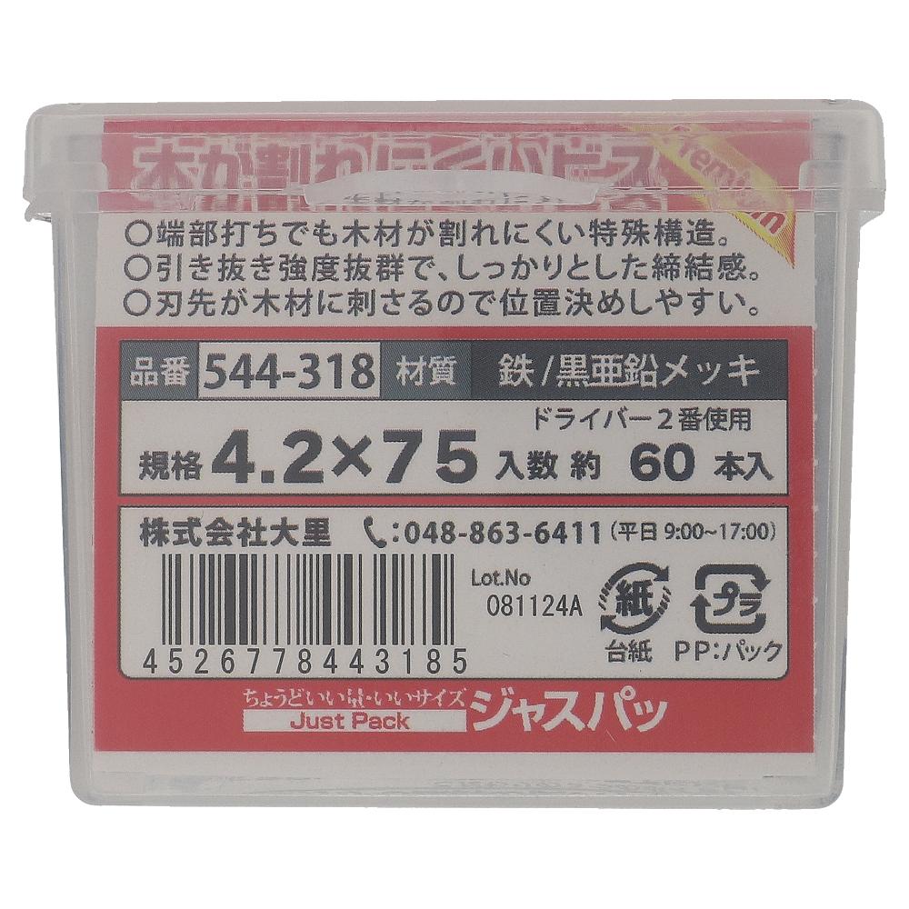 鉄/黒亜鉛メッキ 木が割れにくいビス プレミアム フレキ付 4.2X75 (60本入)