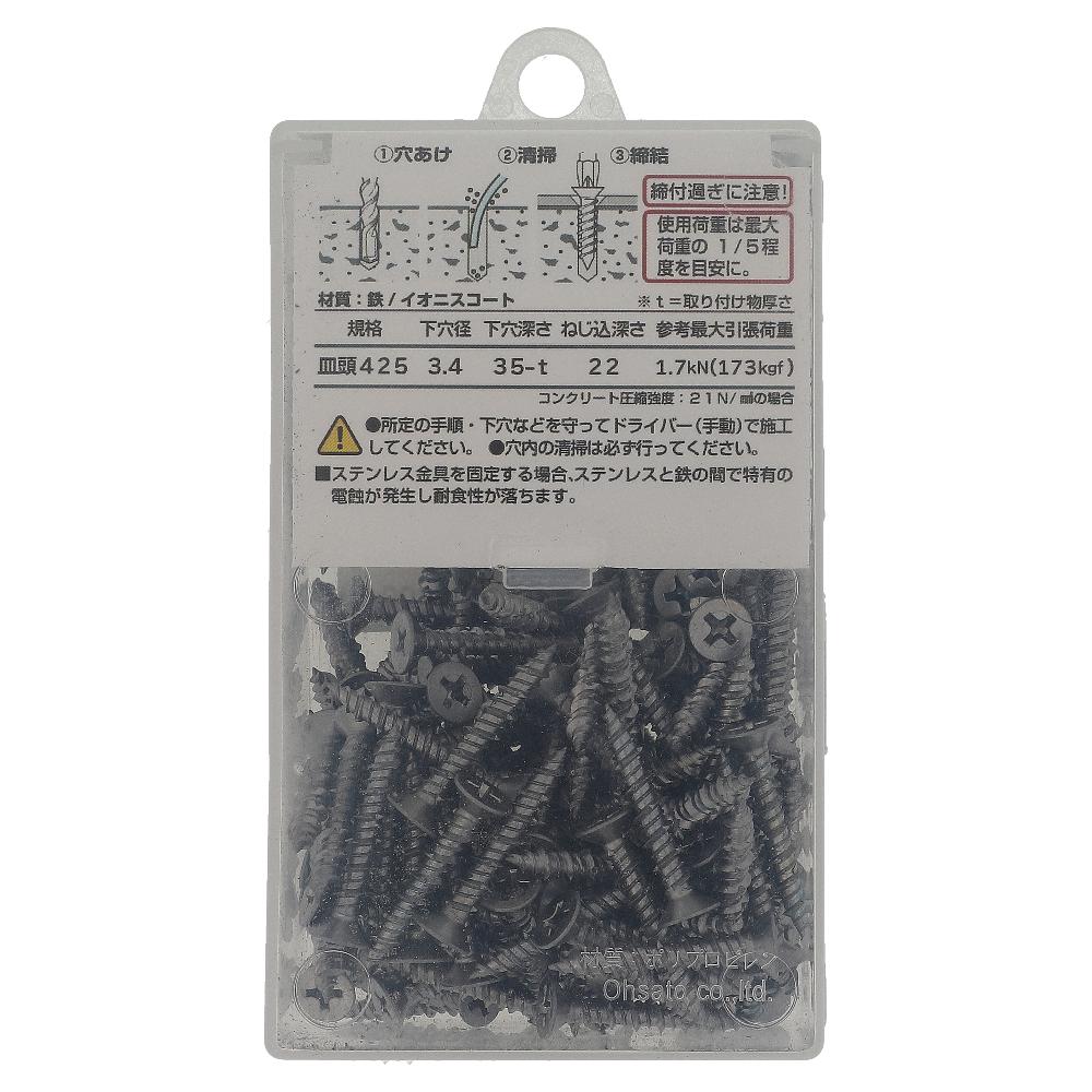 形状:皿頭(+)  用途:コンクリート/ねじ固定式  材質:鉄  処理:イオニスコート