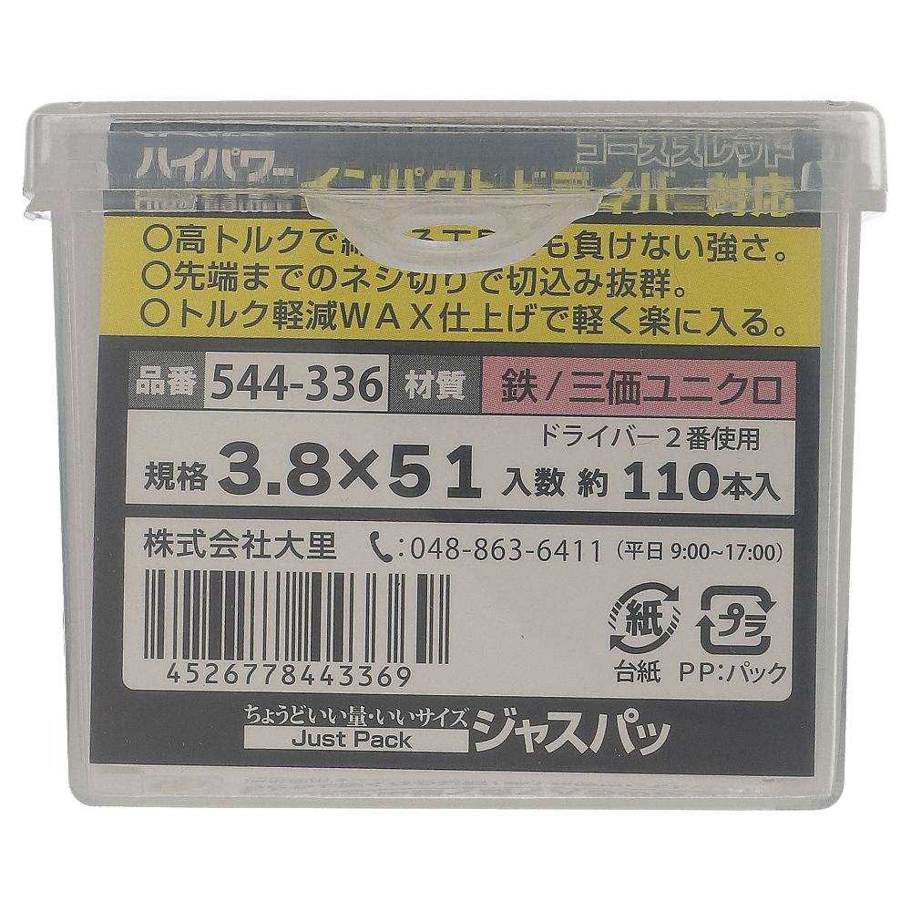 鉄/三価ユニクロ+WAX ハイパワーインパクトドライバー対応コーススレッド 半ねじ 3.8X51 (110本入)
