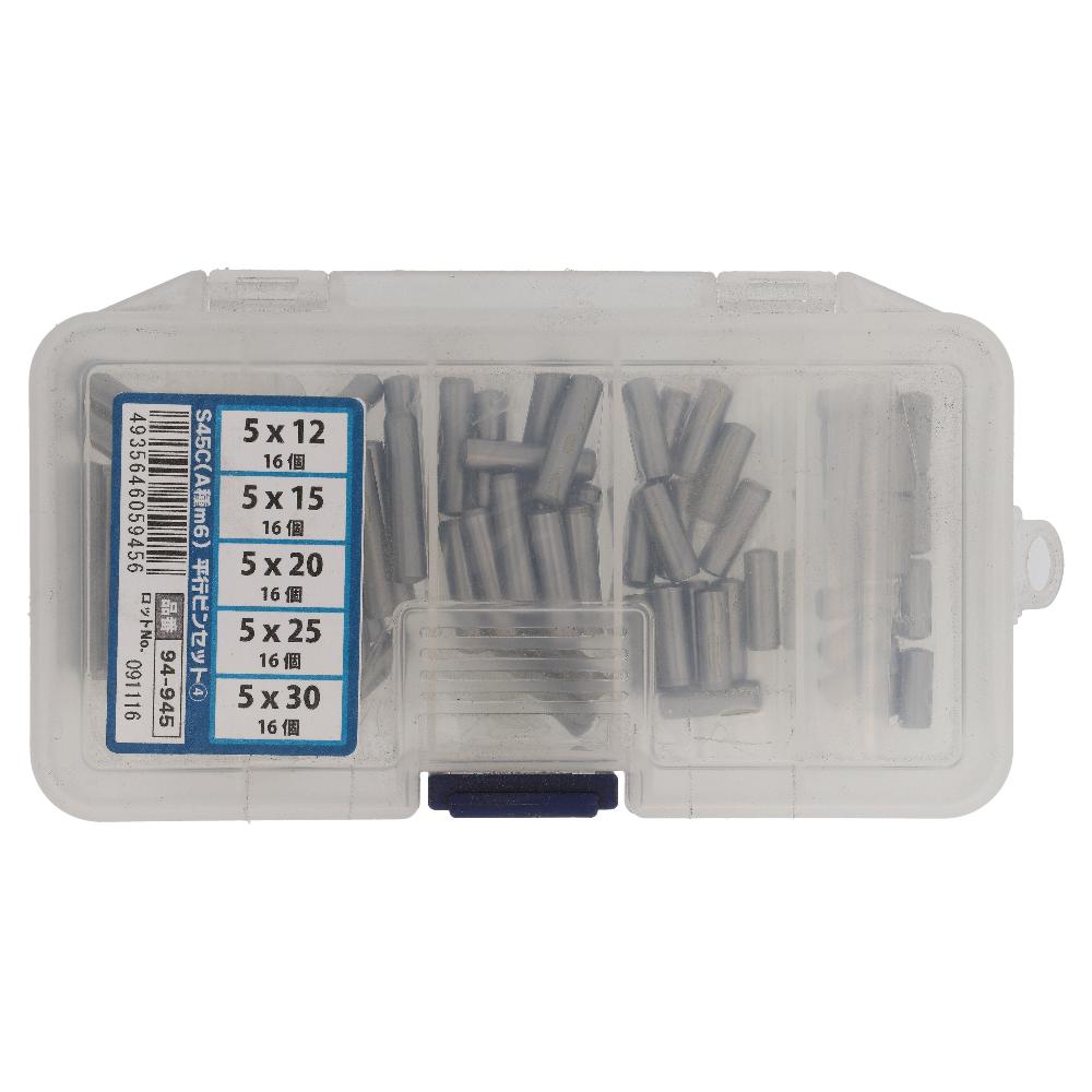 セット内容:5.0mmX12mm(16本)、5.0mmX15mm(16本)、5.0mmX20mm(16本)、5.0mmX25mm(16本)、5.0mmX30mm(16本)  材質:S45C