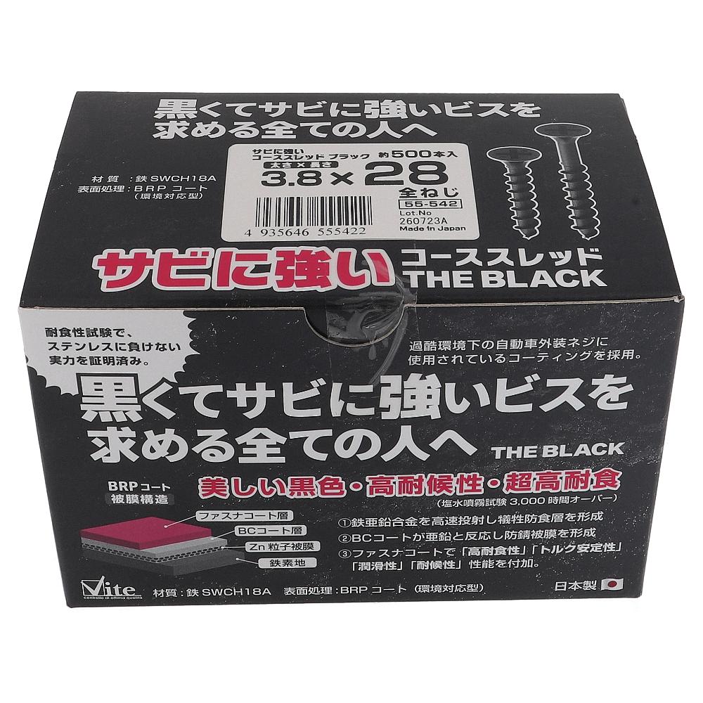 鉄/BRPコート サビに強いコーススレッド ブラック 全ねじ 3.8X28 (500本入)