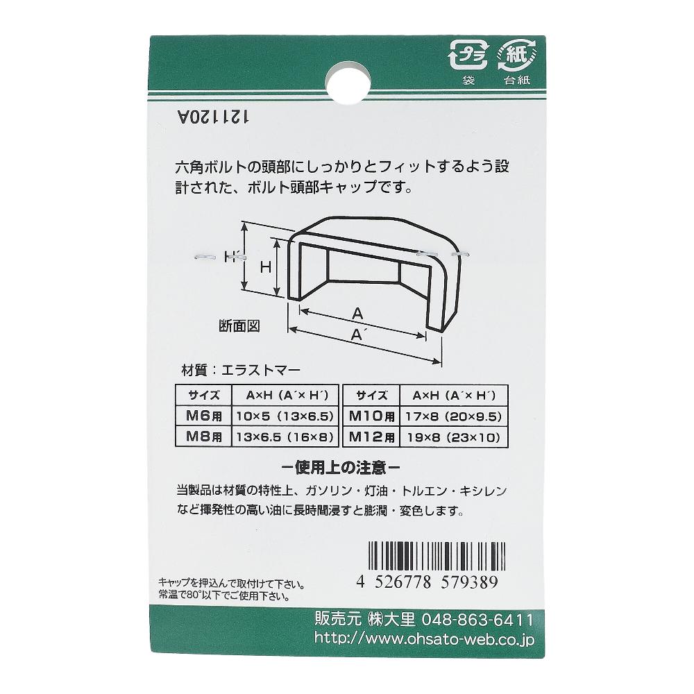 エラストマー 六角ボルト頭部用キャップ 黒 M12 (2個入)